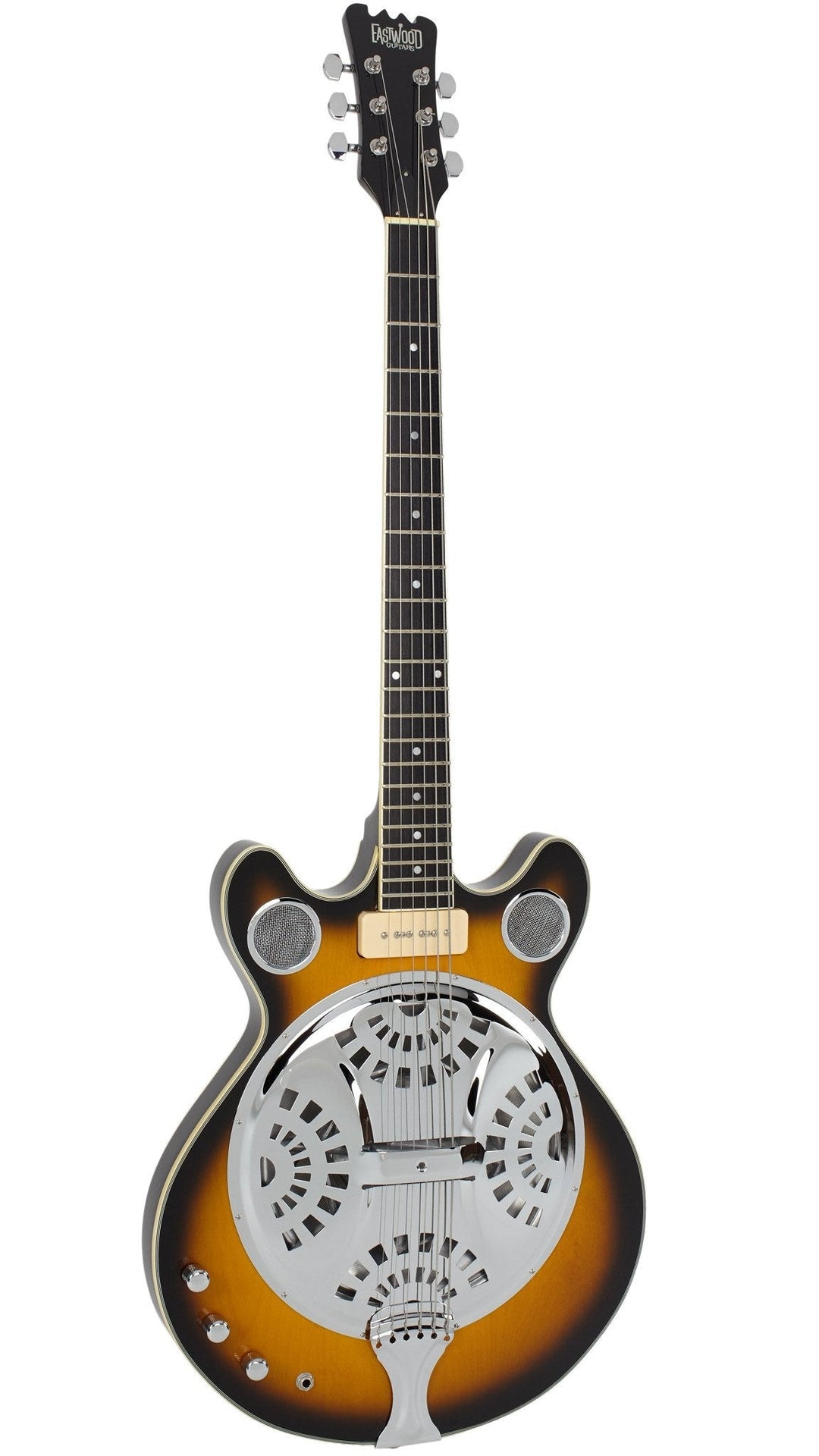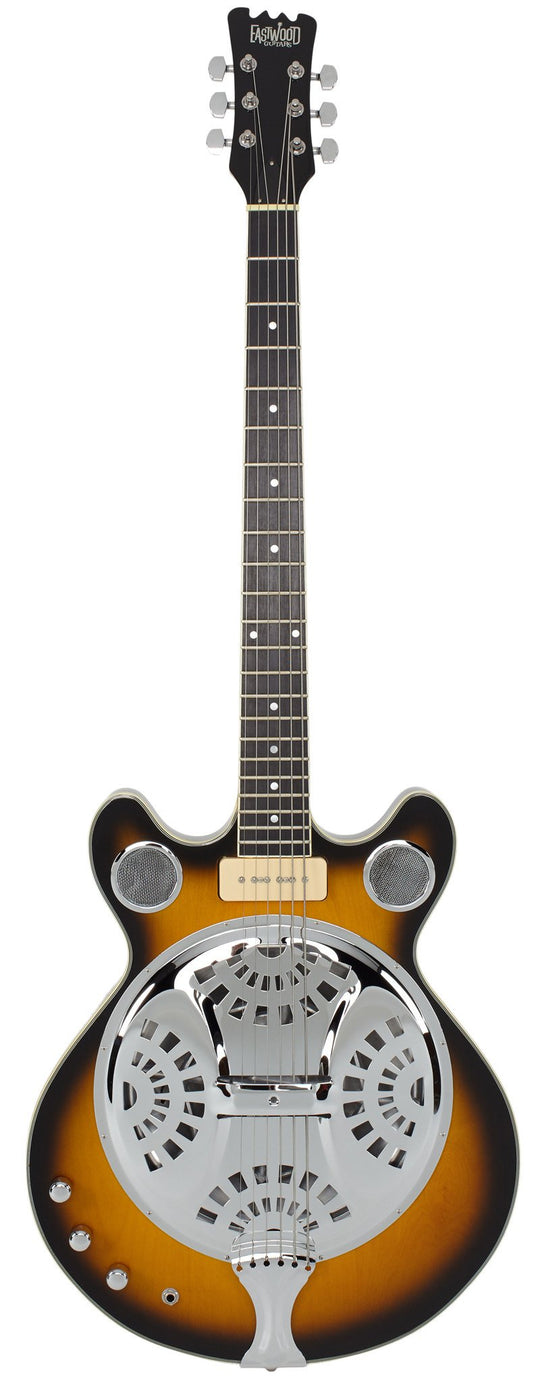 Eastwood's top selling Delta 6 resonator guitar has been in their line-up since 2003. This versatile instrument has a P-90 in the neck position and a piezo pickup in the bridge with a blend knob to dial in as much of each as you want for your perfect tone. So why not make a great thing even better and introduce its big brother, the Delta 6 Baritone Resonator! That's right, we gave it a 27" scale, B-B tuning for that deep baritone voice we all love.Features & Specs