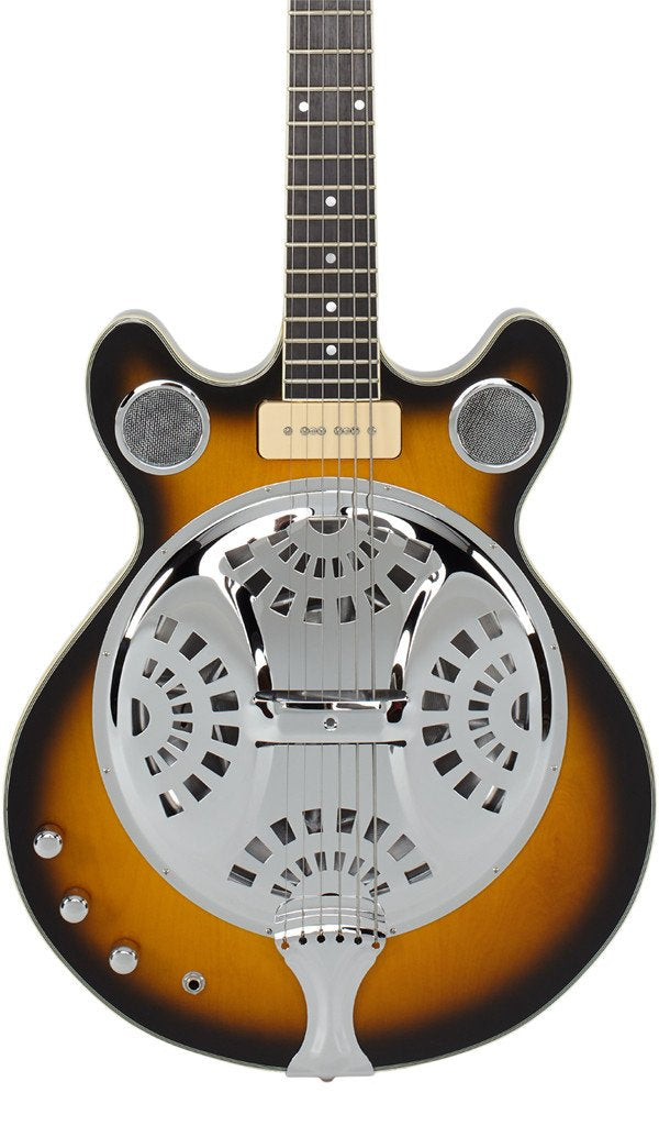 Eastwood's top selling Delta 6 resonator guitar has been in their line-up since 2003. This versatile instrument has a P-90 in the neck position and a piezo pickup in the bridge with a blend knob to dial in as much of each as you want for your perfect tone. So why not make a great thing even better and introduce its big brother, the Delta 6 Baritone Resonator! That's right, we gave it a 27" scale, B-B tuning for that deep baritone voice we all love.Features & Specs